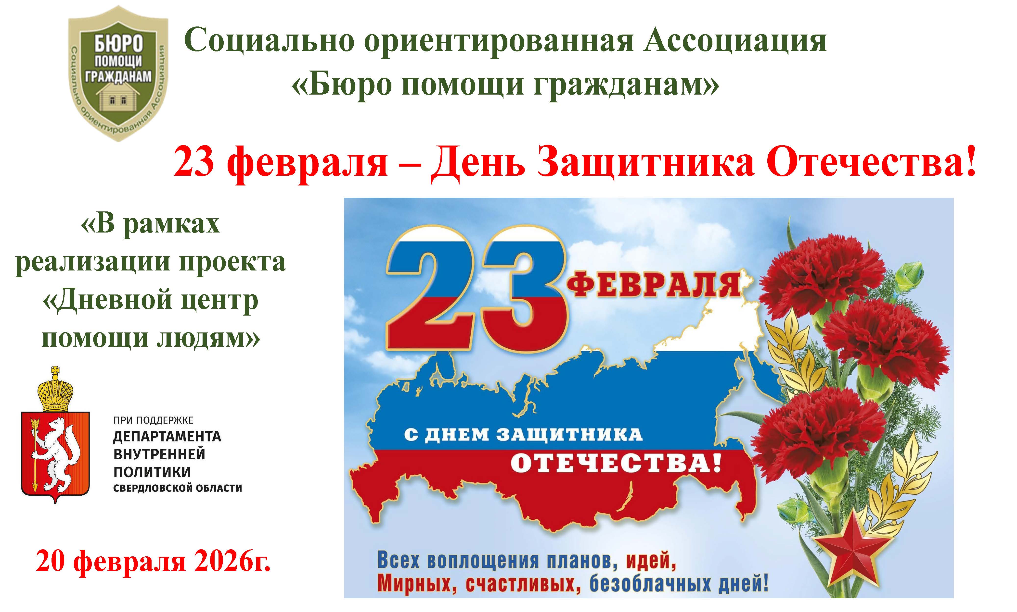 Уважаемые жители Свердловской области! Дорогие ветераны, военнослужащие, дорогие уральцы!От имени Общественной палаты Свердловской области и от себя лично сердечно поздравляю вас с Днем защитника Отечества!